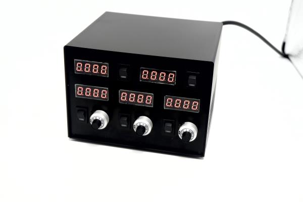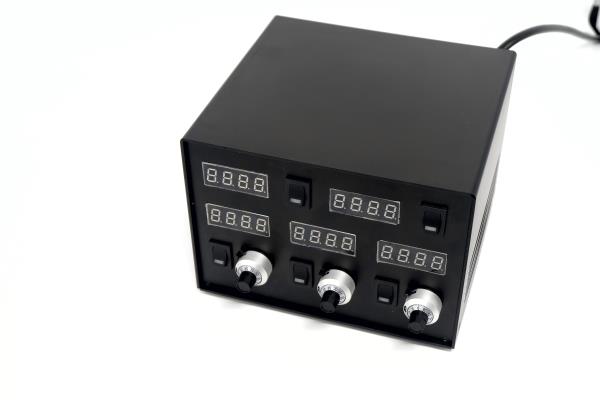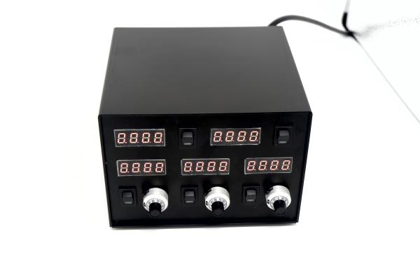 多路数控激光器电源,具有5路输出通道,其中2路可通过电脑进行控制,3路采用电位计进行控制。